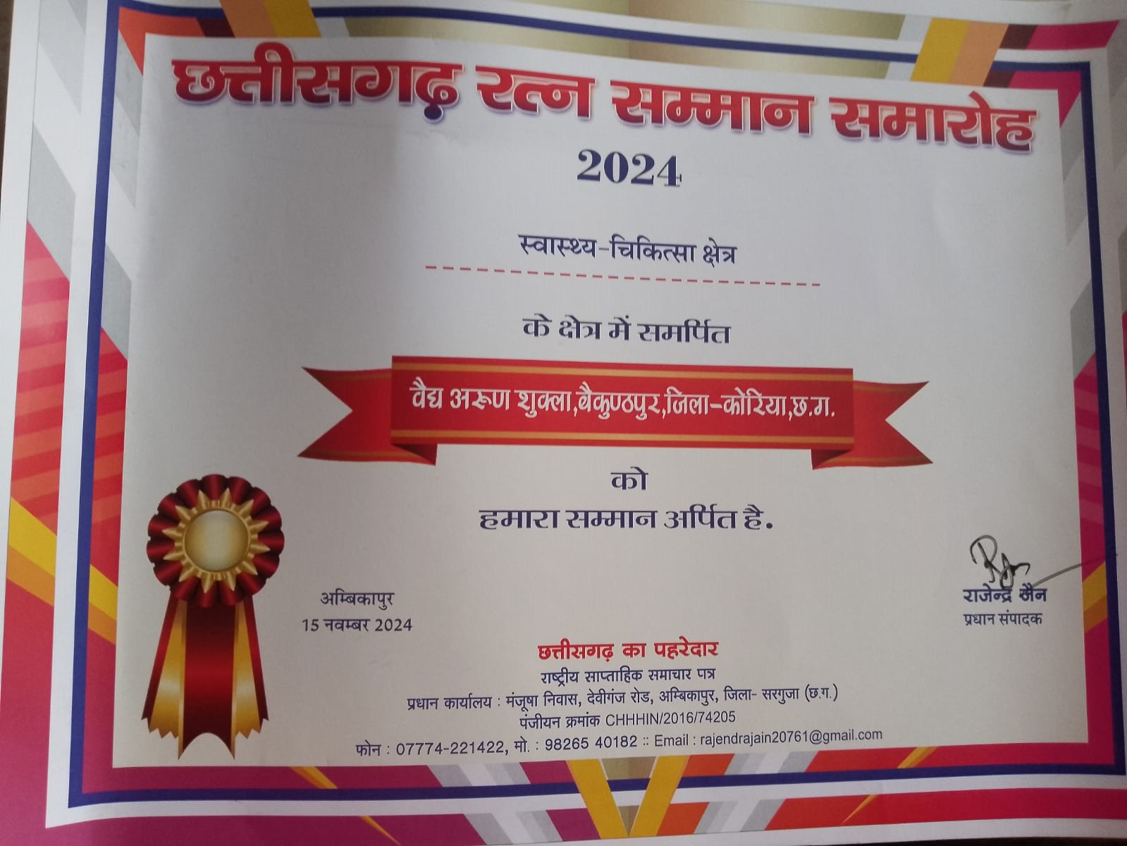 • Address - Baikuntpur District-Koriya State-Chhattisgarh, Country-INDIA